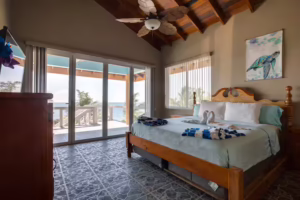 Desfrute de uma nova villa à beira-mar em Maya Beach, Placencia, Belize, com amplas varandas e vistas deslumbrantes do oceano e da lagoa. Relaxe na sua praia particular ou descanse à beira da bela piscina em forma de coração. Esta espaçosa villa possui quartos amplos com tetos com vigas expostas, cozinha completa, ar-condicionado, Wi-Fi gratuito e serviço de limpeza diário. Mantenha-se ativo na academia completa ou aproveite a quadra de vôlei e a churrasqueira ao ar livre. A apenas 20 minutos da vila de Placencia, a propriedade oferece estacionamento gratuito e um carrinho de golfe de seis lugares para aluguel. Ideal para famílias ou grupos que buscam férias de luxo e privacidade na praia em Belize.
