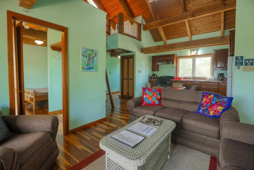 Esta encantadora casa com dois quartos, loft e um banheiro em Placencia, Belize, acomoda até seis hóspedes, tornando-a perfeita para famílias. A apenas 4 km da Praia Maya e a 18 km da vila de Placencia, oferece fácil acesso a praias, restaurantes e comodidades locais. A propriedade possui um jardim exuberante com rede, um deck espaçoso para refeições ao ar livre e vistas panorâmicas da Lagoa de Placencia e do pôr do sol nas Montanhas Maya. No interior, pisos de madeira polida, móveis de vime e cores tropicais vibrantes criam um espaço luminoso e acolhedor. A cozinha totalmente equipada, a área de refeições interna e o cais privado — ideal para pescar e avistar golfinhos — enriquecem sua escapada em Belize.