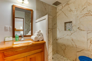 Welcome to Seagrape Escape, a beachfront vacation rental on the Caribbean coast designed for relaxation and adventure. This recently remodeled two bedroom home features two ensuite bathrooms, tiled showers, full air conditioning, WiFi, and cable TV. The spacious wraparound porch with a swing bed invites you to relax and enjoy ocean breezes. The home comfortably sleeps up to eight guests. Complimentary kayaks, SUPs, bikes, yard games, and a BBQ make outdoor fun easy. Swim, snorkel, or explore nearby jungles and Maya sites. This self catering Caribbean beach house provides basic amenities and requires a rental agreement. Exterior security cameras may be in operation during your stay.